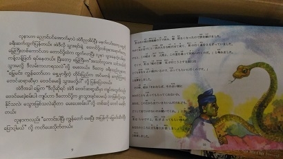 たとえばこちらの本は、ミャンマー語と英語が併記されています。最初はミャンマー語で、高学年になったら英語にチャレンジすることもできます。