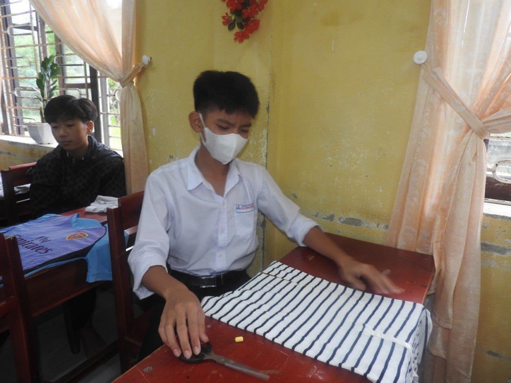 BAJは、ベトナム・フエ市の小中学校3校で、環境教育を行っています。10月12日にラムモンクァン中学校にて「古着でハンドバッグをつくろう!」という環境教育授業を実施しました。
