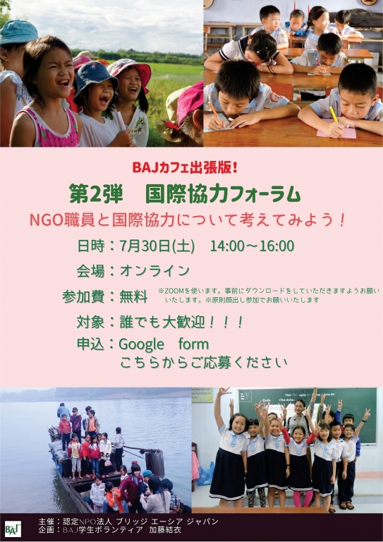 【タイトル】BAJカフェ出張版! 国際協力フォーラム ~NGO職員と国際協力を考えてみよう!~