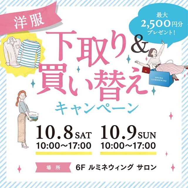 10月8日(土)・9日(日)の2日間、大船ルミネウィングにて「洋服下取り&買い替えキャンペーン」が開催されます。